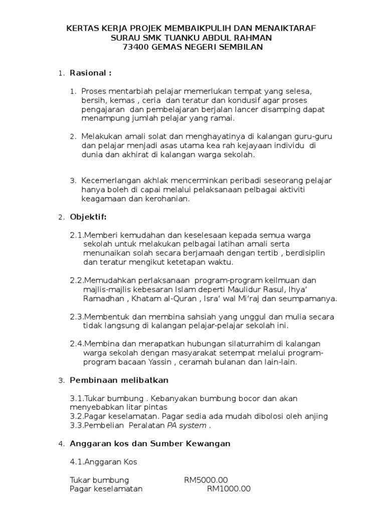 Kertas Kerja Projek Membaikpulih Dan Menaiktaraf Pdf